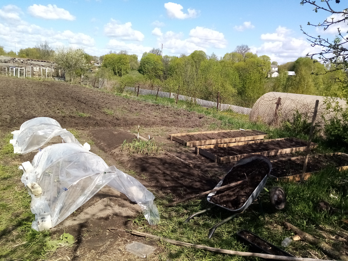 На календаре 9 мая, на улице солнечно и ветренно. И мы наконец-то поймали общий семейный выходной и... посадили картошку)))) теперь становится страшно от того, сколько полоть нужно будет .... Ну и немного фото А вот и зелёный лук выглянул, щенок часть выкопал правда ((