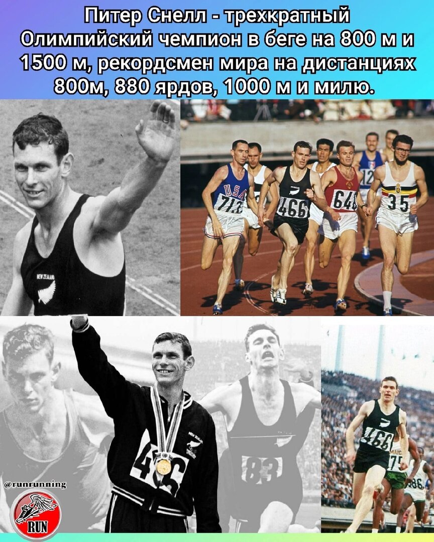 Питер Снелл - трехкратный Олимпийский чемпион в беге на 800 м и 1500 м, рекордсмен мира на дистанциях 800м, 880 ярдов, 1000 м и милю. Результат Снелла на 800 метров в 1:44.3 уже 57 лет остается рекордом Новой Зеландии и Океании. Это самый старый национальный рекорд в легкой атлетике.