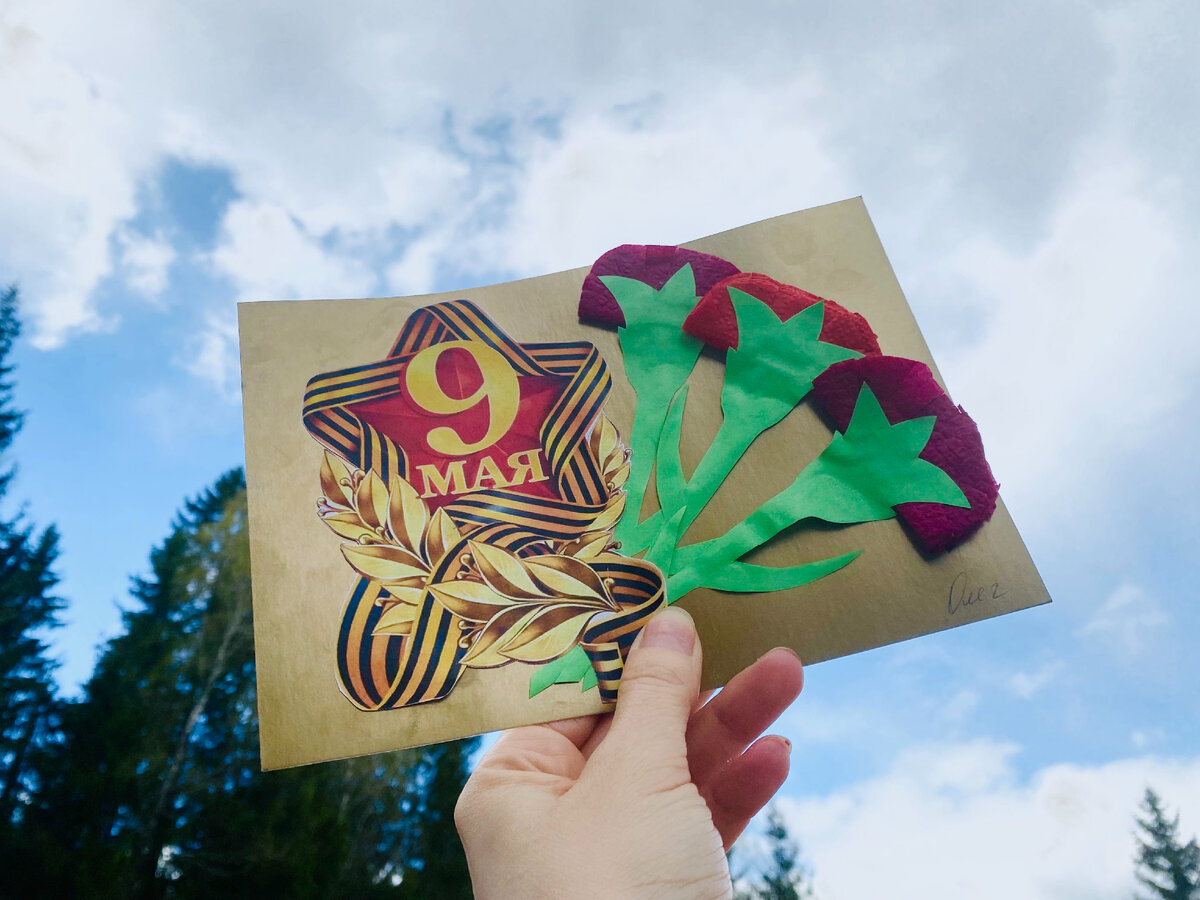 Неужели патриотические ценности возвращаются в школы и детские сады? Свое детство 90х я вспоминаю, что круто было иметь на обложках дневников и тетрадей героев зарубежных фильмов и мультфильмов. Даже не припоминаю поделок на тему 9 мая. Только один раз во дворе школы возложили цветы к памятнику учеников этой школы, ушедших на фронт. Но я помню дедушку и вечерние посиделки у костра, в котором запекалась картошка. Помню как он рассказывал про войну, про голод, холод и как ему приходилось на детских санках возить из леса ветки зимой, чтобы было чем топить. Помню как сложно ему было об этом рассказывать. Помню как он учил меня добру, честности и справедливости. А за мое вранье мог одним лишь взглядом сказать насколько я неправильно поступаю. И было стыдно. Помню даже несмотря на то, что школа и университет уделяли мало внимания этой Памяти. На днях, мой сын (4 года) пришел из садика и принёс эту открытку: - Мама! Это тебе! Мы в саду делали. Была война, танки, пиу-пиу и День Победы! Са