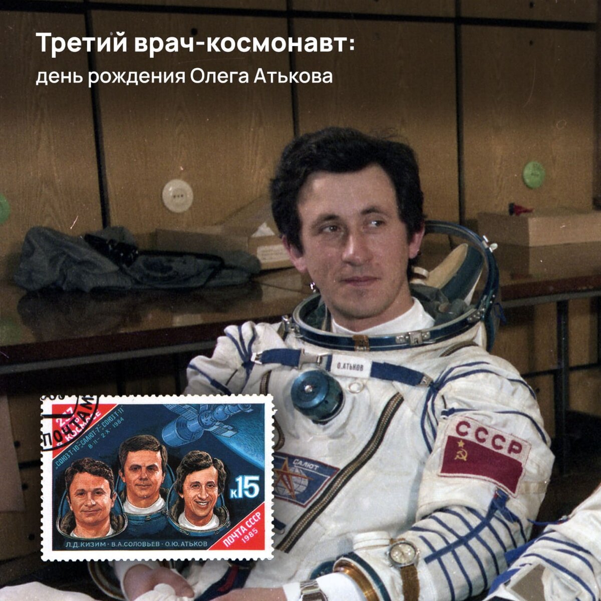 9 мая 1949 года родился Олег Атьков — учёный, врач, лётчик-космонавт и доктор наук. Является третьим из шести советско-российских врачей-космонавтов. Врачи в космосе по порядку: — Борис Егоров («Восход-1»); — Василий Лазарев («Союз-12» и «Союз-18А»); — Олег Атьков («Союз Т-10»); — Валерий Поляков («Союз ТМ-6» и «Союз ТМ-18»); — Борис Моруков (Шаттл «Атлантис», программа STS-106); — Олег Котов («Союз ТМА-10», «Союз ТМА-17» и «Союз ТМА-10М»). C 8 февраля по 2 октября 1984 года вместе с другими членами экипажа космического корабля «Союз Т-10» Олег Атьков совершил полёт на станцию «Салют-7». При этом, продолжительность полёта составила рекордный на то время срок — 236 суток 22 часа 49 минут. Во время нахождения на станции Атьков проверил новую аппаратуру и приборы для оценки состояния космонавтов. И всё время пребывания на станции занимался уникальными научными медицинскими экспериментами.
