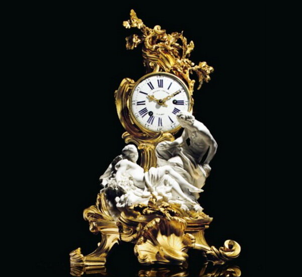Часы с пружинным механизмом собирали во Франции еще в XVI веке, но большая часть их была разобрана со временем, чтобы извлечь украшавшие их золото, серебро и драгоценные камни для создания других украшений. В эпоху рококо появились маятниковые часы, которые стали декорировать черепаховым панцирем, серебром, золоченой бронзой, мозаикой и фарфором. К концу XVII века и в период правления Людовика XV (1723-1774) золоченая бронза в сочетании с фарфором стала особенно популярной для отделки изысканных настольных часов и других предметов роскоши.