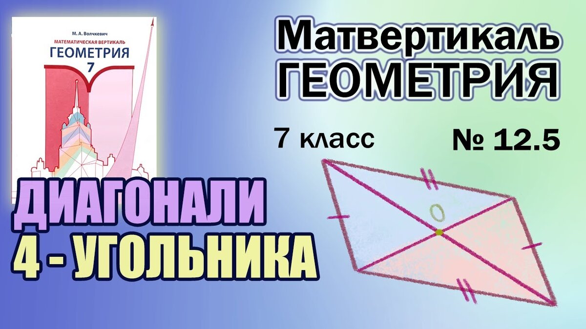 Подпишитесь, пока есть возможность. В задаче рассмотрим четырехугольник (который, как мы узнаем в 8 классе, является параллелограммом) и его диагонали, а также докажем, что его диагонали делятся точкой пересечения пополам (таким образом мы докажем одно из свойств параллелограмма - это понадобится нам для 8 класса). Если у Вас имеется альтернативное решение, обязательно напишите об этом в комментариях, мы с удовольствием запишем альтернативную версию решения данной задачи! «Противоположные стороны четырехугольника попарно равны (рис. 12.18). Докажите, что его диагонали делятся точкой пересечения пополам.» ❗ По любым вопросам Вы можете написать нам в комментариях к видео или на нашу электронную почту: 👇👇👇