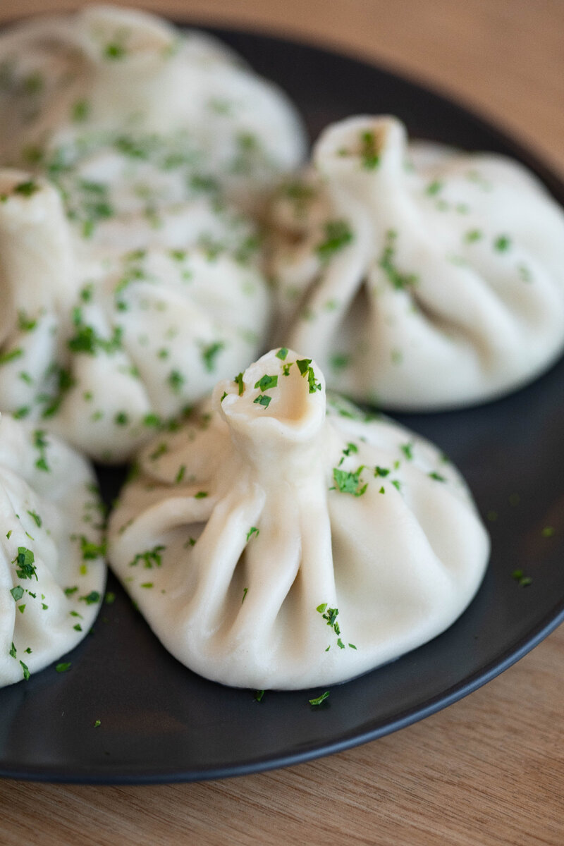 ИНГРЕДИЕНТЫ: Мука пшеничная – 400 г Вода – 280 мл Фарш – 300 г Лук репчатый – 1 шт. Соль - по вкусу Перец черный - по вкусу Кинз - по вкусу Зира - по вкусу СПОСОБ ПРИГОТОВЛЕНИЯ: 1.Смешиваем муку, воду и соль, месить тесто.Замешиваем около 5-10 минут, заворачиваем в пищевой пакет или пленку и оставляем при комнатной температуре на 40 минут. 2. Приготовим начинку: репчатый лук порубить, также свежую кинзу.Лук посолить. Добавить мясо. Мясо можно порубить ножом. Туда же кинзу, зиру, соль, перец.Затем долить воды, доводя фарш до консистенции сметаны.Делим тесто на 10 кусков .Каждый кусок обминать в шар, и накрыть пленкой. 3. Берем самый первый сформованный шарик, тонко раскатываем в кружок. В центр добавить столовую ложку начинки.Собираем концы теста в мешочек, делая складки.Отвариваем подготовленные хинкали в соленой кипящей воде, около 10-12 минут.