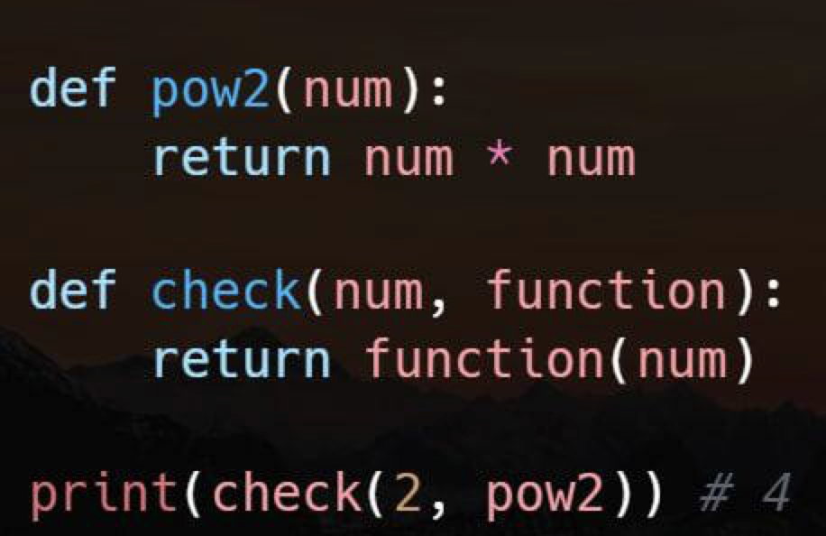 В Python есть возможность передать функцию в качестве аргумента, чтобы потом использовать её внутри другой функции. Однако такая гибкость может плохо влиять на читаемость кода, поэтому пользоваться фичей нужно с осторожностью. Вы даже можете хранить функции внутри структур данных и затем ссылаться на них позже: #python
