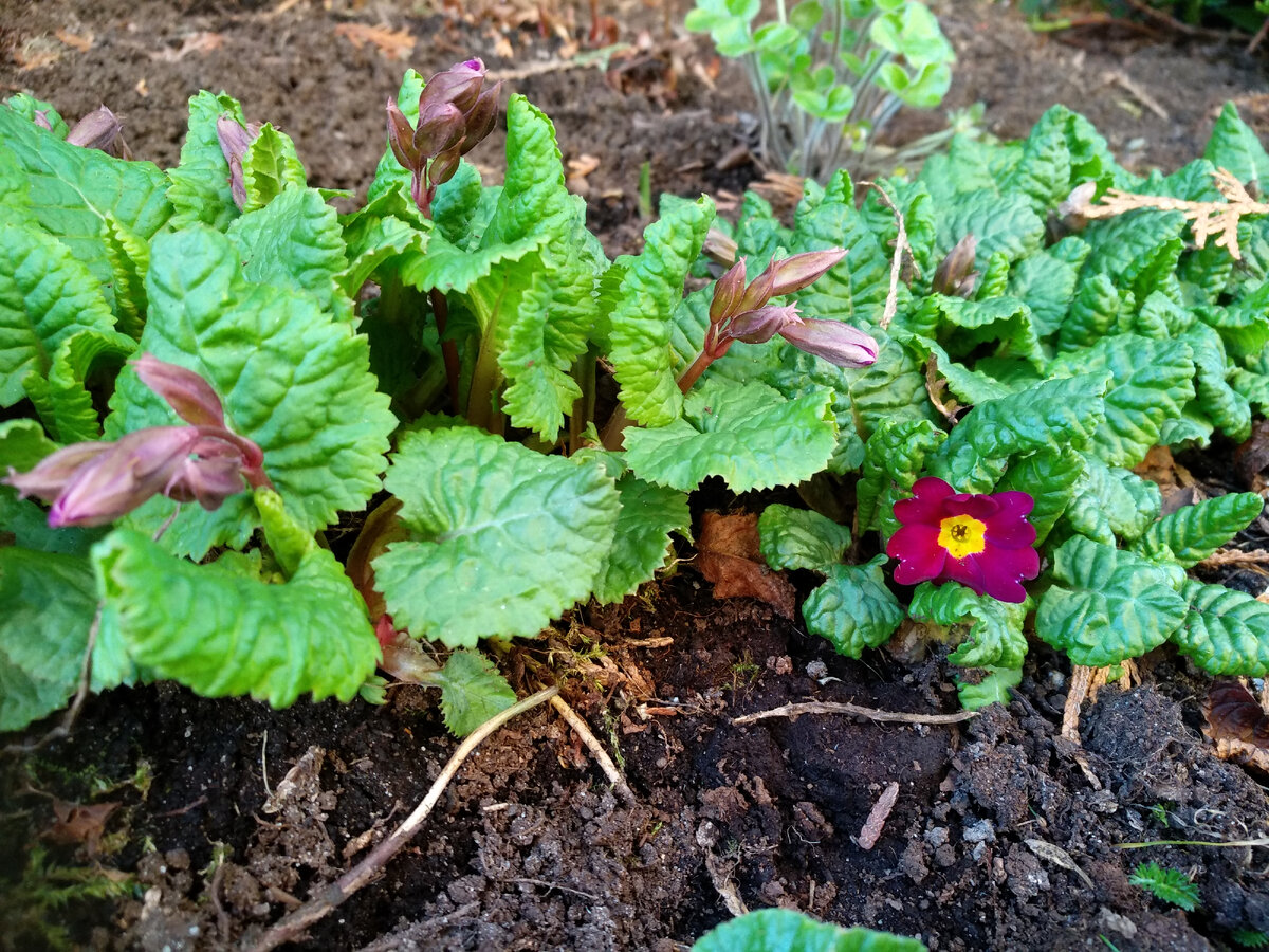 Сначала цветы, потом грустное. Раскрылись примулы. Теперь буду знать какие цвета у меня есть среди старожилов. А вот какие из новинок - узнаем, когда перезимуют. Под туями обнаружился результат моего прошлогоднего черенкования. Горшок с калиной бульдонеж. Вполне живой и уже раскрывающей почки. А стоял он просто на земле около кучи всяких ёмкостей Остальные "результаты", кстати, зимовали в открытом грунте. Кроме розы, которая зимовала под бутылкой и до сих пор под ней сидит. Жду не дождусь, когда вроде бы набухшие почки развернутся. И печальное... А еще ночью, видимо, был заморозок. Мы уезжали 8го часов в 9 вечера и градусник в машине показывал уже +5. Приехали 9го, не планировали, но забыли важную вещь. Высаженные свекровью бархатцы не везде выдержали. Не понимаю, почему она их так рано высадила. А тут всем трём кустикам досталось. Хотя вчера высаженные мной цинерарии, чуть левее, вполне целые. В вазонах/кашпо повреждены несколько кустов. БОльшая часть целая. Предполагаю, что был