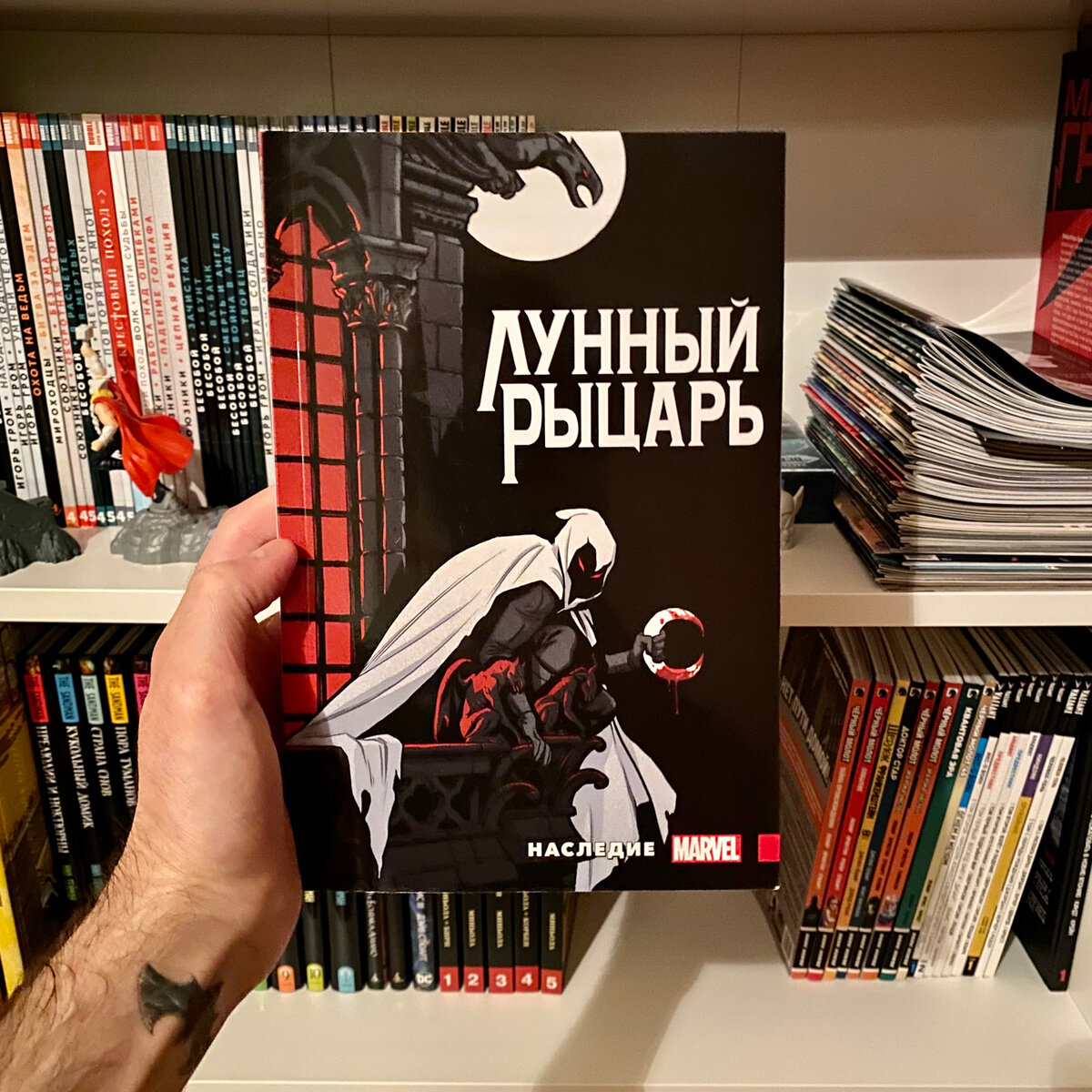 «Начинается новый день, и с ним приходит новый враг. Ни с чем подобным Марку Спектору/Лунному Рыцарю ещё не доводилось сталкиваться! Лунный Рыцарь всегда обитал в тенях, а этот новый враг грозиться уничтожить все тени своим ослепляющим огнём и пламенем. Встречайте величайшего врага Лунного Рыцаря – Царя Солнца. Но пока столкновение с Царём Солнца занимает Лунного Рыцаря, у Марка намечаются другие проблемы – некто по прозвищу Правдоруб доводит людей до самоубийств. Слава богам, что Марк держит в узде свои многочисленные личности. По крайней мере на данный момент...» © Если честно, из всех комиксов про Лунного Рыцаря, которые я прочитал, этот зашёл меньше всех… Первая половина книги держала меня в напряжении, я читал в захлёб… новые противники, напряжение между личностями Спектора, новые сюжетные повороты… 😱 А потом началась полная дичь… другой стиль рисунка, сюжет как будто оборвался и в него вклинилось нечто странное и несуразное! Мне такое не зашло 🤢 Дочитал до концовки, но она уже