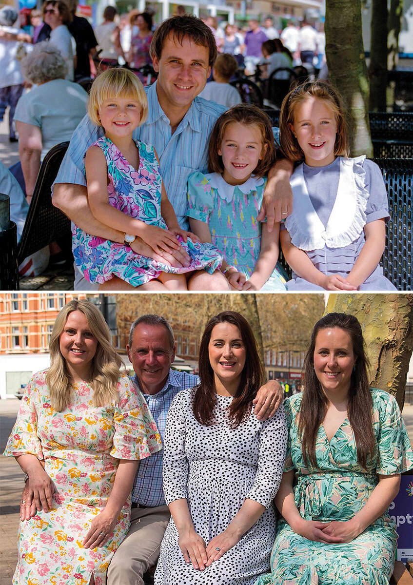 “Доктор Ричард Скотт был запечатлен со своими тремя дочерьми на Бридж-стрит в Питерборо в 1994 году. Он рассказал: “Я думаю, что это была суббота, и моя жена работала в больнице, а я повез девочек в Питерборо”. Ричард работал врачом общей практики, а также проводил эндоскопию в окружной больнице Питерборо по вечерам и выходным. Он вышел на пенсию в 2019 году, но после вновь вернулся к работу, чтобы помочь с прививками от Covid. Его жена, Кэролайн Скотт, работала рентгенологом в PDH и городской больнице Питерборо, а сейчас вышла на пенсию.”