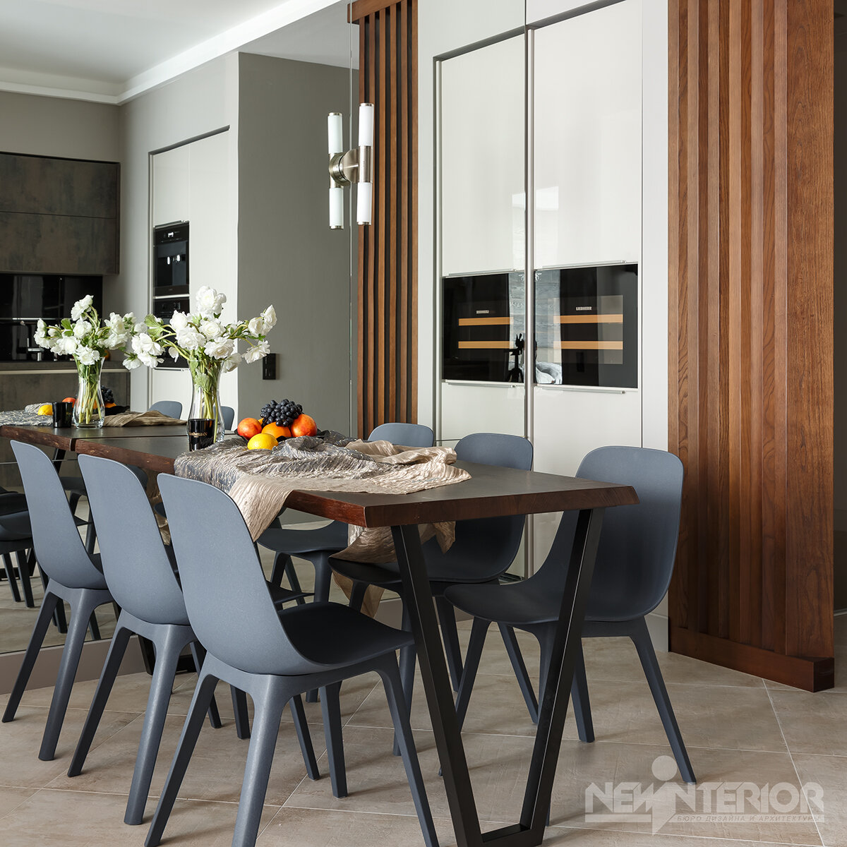 В интерьерах выполненных в современном стиле принято сочетать материалы и отделку с натуральными фактурами и оттенками. Так и в нашем интерьере квартиры для молодого человека расположенной в ЖК Леонтьевский мыс, мы сочетаем крашеные в серый цвет стены, перегородку в холле выполненную из дерева и фасады кухни в отделке под цемент. На полу керамогранит с матовой фактурой камня. Геометричная современная мебель дополняется интерьер. Помещение кажется больше благодаря тому что на одной из стен мы разместили зеркало во всю высоту и ширину стены. Обратите внимание на конфигурацию кухни - справа вы видите две колонны с глянцевыми фасадами, а слева колонна только одна. Но за счёт отражения в зеркале мы добились симметрии! Мы снимали видео о создании проекта этой квартиры, снимали процесс ремонта и финальный обзор готового интерьера. Все видео размещены на моём канале YouTube: https://youtu.be/XA7oNSYRlG4 Поскольку хозяин квартиры – молодой мужчина, мы разработали строгий и брутальный интерьер