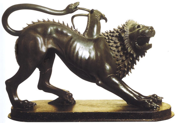 Античные художники внешний облик Химеры представляли примерно так, как показано на иллюстрации выше.