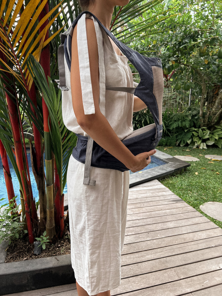 Со временем можно отстегнуть переноску и оставить только часть, крепящуюся на бёдра, повернуть ее на бок и использовать при прогулках на небольшие расстояния, когда нужно донести ребёнка с детской площадки до дома, например :)