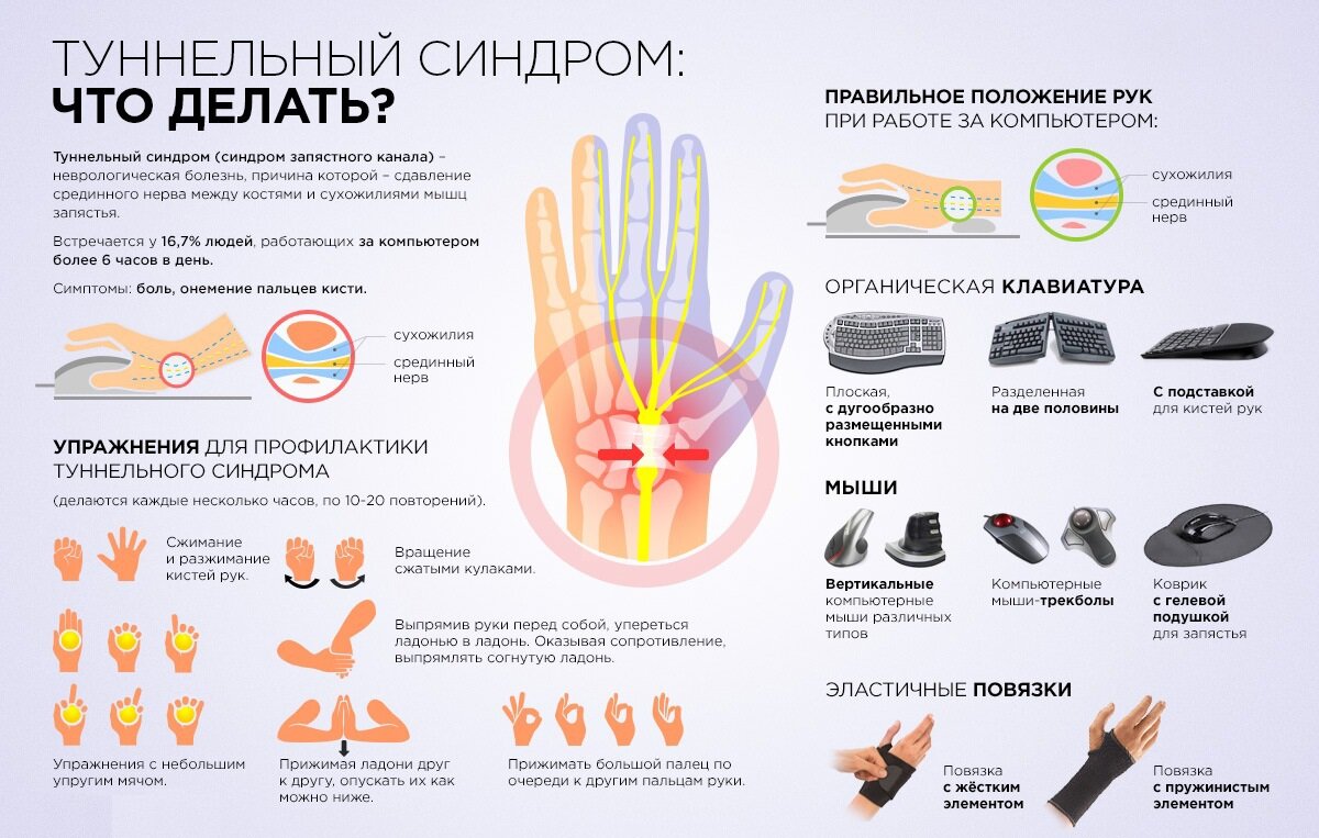 Туннельным синдромом запястья называют такое состояние, когда происходит сдавление в карпальном (запястном) канале срединного нерва. Спровоцировать его может компрессия или травма. Туннельный синдром запястья нередкая патология и встречается у 1-3 % населения, причем преимущественно у людей, род деятельности, которых связан с мелкой, монотонной моторикой кисти. Половина от всех страдающих данным синдромом это люди, вид занятости, которых связан с использованием компьютера. Также данное заболевание можно считать профпатологией у музыкантов, портных, офисных служащих и пр. Синдром встречается у активного трудоспособного населения в уже зрелом возрасте (40-60 лет), а в 105 случаев и в более молодом возрасте. Ученые пришли к выводу, что у активных пользователей ПК риск развития синдрома на 15 % выше, особенно у женщин. #травма #профилактика #запястье #здоровье
