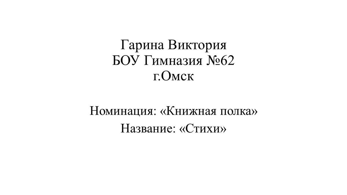 Гарина Виктория Юрьевна Гимназия №62, 9-1 класс Книжная полка