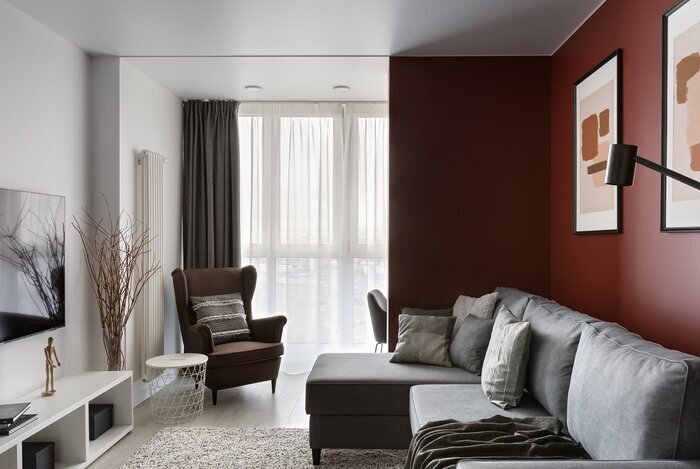 Новый проект в Минске, реализованный студией Protena, показывает журнал CityDog. Дизайнер и архитектор студии в тандеме создали интерьер для двухкомнатной квартиры под сдачу в аренду. Смотрите, что у них получилось. Планировка Эта квартира в новостройке сдавалась со свободной планировкой, поэтому авторы проекта могли зонировать ее по своему усмотрению. В финальном варианте на 53 метрах получилось обустроить общее пространство гостиной, кухни и прихожей с небольшим кабинетом за перегородкой и отдельную спальню с гардеробной. — Квартира предназначалась для сдачи в аренду, поэтому в отделке и мебели мы использовали легко восстанавливаемые и максимально неубиваемые материалы, — добавляет дизайнер. — На стенах — краска, на полу — плитка. Двери покрашены в цвет стен. Гостиная, объединенная с кухней и прихожей Квартира расположена в новом доме на 22-м этаже. Через большие окна в пол открывается красивый вид на город и Слепянскую водную систему. Вечером в окне светится Национальная библиотека.