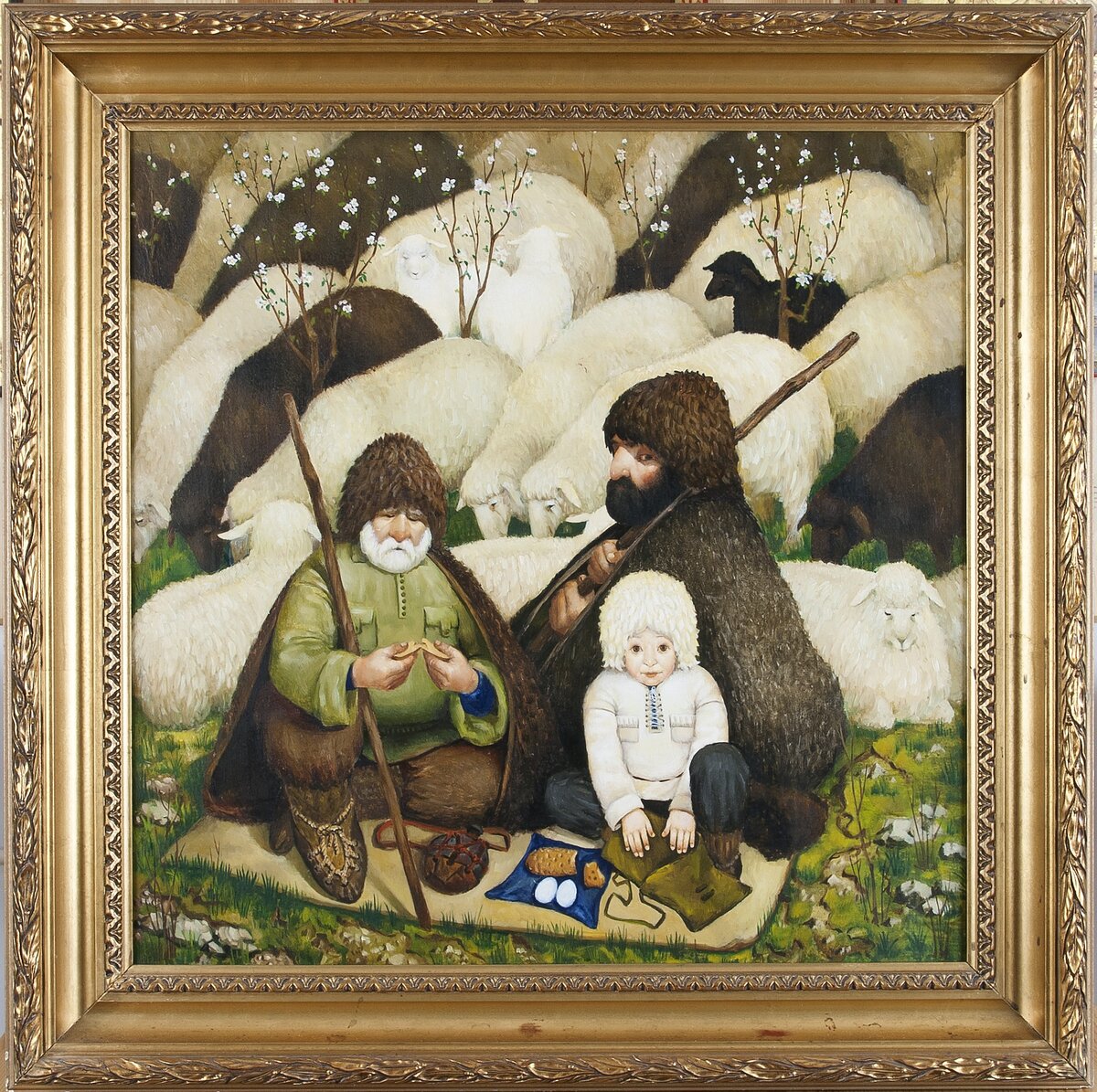 «Пастухи» - картина с очень богатой историей: ее приобрёл Евгений Вадимович Ройзман, и в момент пожара в квартире Уралмаше, не драгоценности, а выносил картины «Пастухи» и «Масленица». Ройзман: «В конце 80-х годов у нас на Ленина, 11, в старом здании Станции вольных почт, открылась выставка неформальных художников. Все придумал Витя Махотин. Это был глоток свободы. Жители города очень любили выставку. Люди шли каждый день. А мы оттуда вообще не вылезали. Я еще тогда стихи писал. Там я впервые увидел картины Алексея Языкова «Азия» и «Пастухи». Увидел и обомлел. За «Пастухов» была назначена цена тысяча рублей! В то время я вообще не знал, что в природе существуют такие деньги. <…> Я жил на пятом этаже. Соседские дети играли в войну. На чердаке, прямо над моей головой, у них был штаб. Штаб освещался керосиновой лампой. Случился пожар. Я оставался в квартире до последнего. Горело очень сильно. Горящую квартиру я покидал с двумя картинками в руках: “Масленица” и “Пастухи”».<…> А через п
