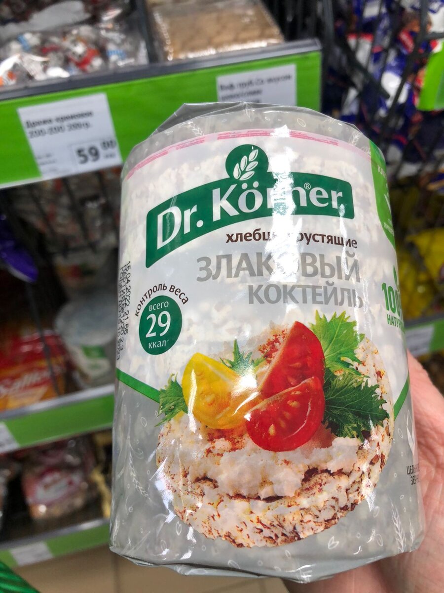 Продолжая тему, как экономить и при этом, питаться продуктами с хорошим составом, расскажу про свой крайний поход в Фикс-Прайс. Там частенько можно найти продукты с хорошим составом. При этом, те-же самые товары в Дикси или Пятерочке продавались уже по гораздо большим ценам. Хлебцы Dr. Kërner злаковый коктейль. Вкусные, но сразу предупреждаю, эти - не сладкие. Делаем с ними бутерброды с творожным сыром и помидорами, используя вместо хлеба или отдельно как перекус. На работе или дома с чаем - самое то! Очень неплохой состав: пшеница, крупа рисовая, крупа гречневая. Все. И стоят такие хлебцы в Фикс-прайсе 29,5₽ за пачку. Для сравнения, хлебцы той же самой фирмы в Дикси или Пятёрочке, будут стоить уже порядка 85-125₽ за пачку. Разница ощутимая. Ниже фото из пятёрочки с хлебцами этой фирмы. Следующий продукт, на который обратил бы внимание - лапша Соба фирмы Dr. Naturi. В Фикс-прайте лапша стоит 33 ₽ за пачку 400гр. Состав очень неплохой: мука пшеничная хлебопекарная высшего сорта, мук