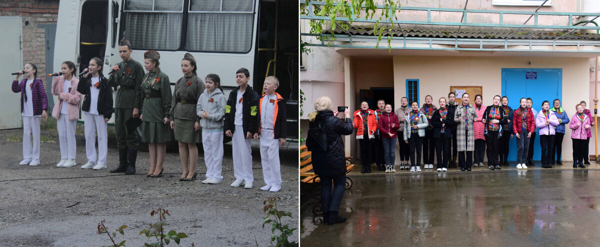 #ДеньПобеды#дшипрохладныйкбр 5 и 6 мая учащиеся и преподаватели Детской школы искусств подарили жителям города выездные праздничные концерты, на которые смогли прийти все желающие. «Это наш маленький, скромный подарок фронтовикам!» – сказали маленькие артисты и ещё добавили, –« дождь нам не помеха!» Несмотря на майский дождь, сопровождающий наши передвижные творческие агитбригады, концерты состоялись в любую погоду, хоть и не в полном объёме! Благодарные жители спальных микрорайонов сочли неуважительным отношением, по отношению к юным артистам, находиться дома и смотреть концерт из окон или с балконов. Вооружившись зонтиком и парой калош, они пришли к импровизированной концертной площадке, поддержав выступающих. Зрители дружно подпевали до боли знакомые с детства песни, танцевали и громкими, дружными аплодисментами, благодарили ребят за исполнение концертных номеров. 5 мая по адресу: КБР, город Прохладный улица Свободы 180 – 200, выступали участники вокального ансамбля «Мечта», руко