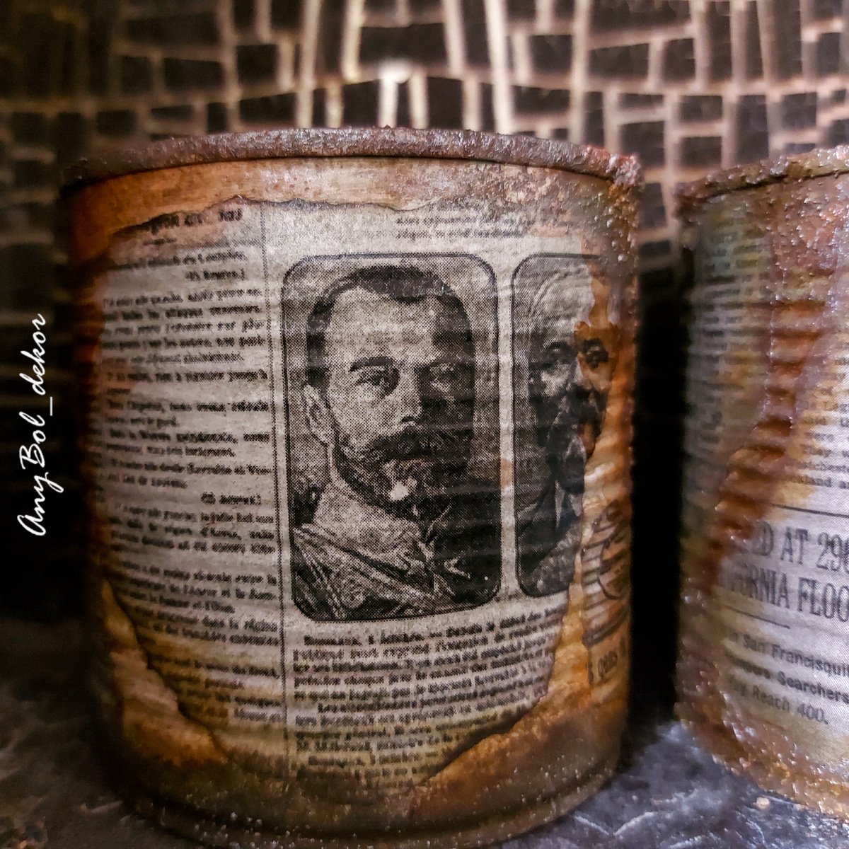Приветствую вас, мои ❤ Сегодня немного ржавчины и пепла, исторической прессы и потёртостей. В такой технике, в таком стиле возможно задекорировать бутыль, шкатулку-сундук, ключницу, даже набор для кухни, можно любые вырезки из ретро-газет оформить ввиде панно. Это своего рода карточка декоратора. Свои баночки я поставила как реквизит для фотосессии будущих работ. А для тех, кто заглянет ко мне "На Бульварную" будет возможность попробовать их "на зубок " Декор выполнен с применением знаний от Кристина и её чудесной школы SENZARIA - трафареты, декор, обучение Люблю вас❤❤❤ #anybol_dekor #декоржестянойбанки #карточкадекоратора