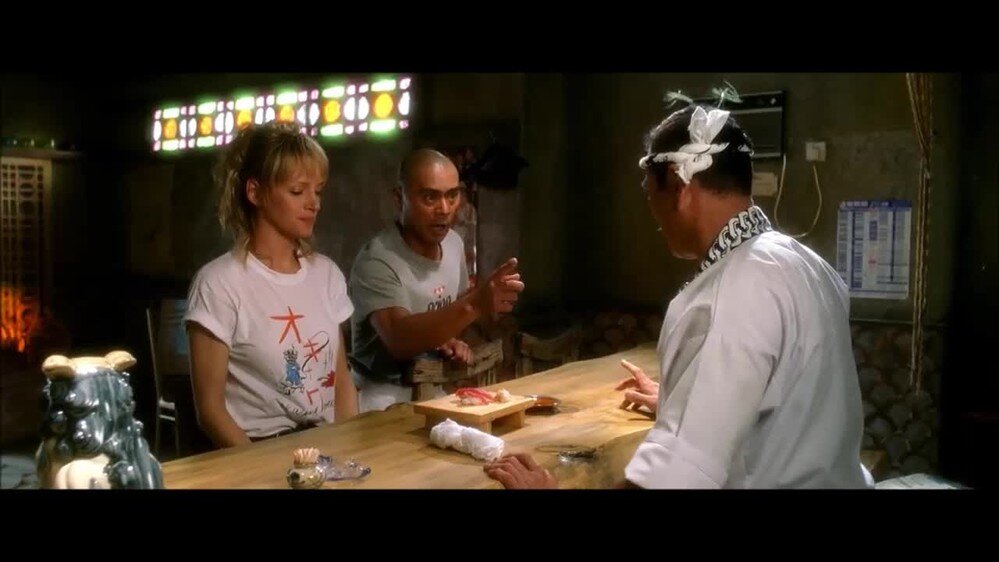 Во многих Японских и Южнокорейских фильмах герои постоянно едят суши. И это не удивительно, ведь они являются одними из самых любимых блюд в этих странах. Не отстают от азиатских коллег и западные режиссеры, вставляя в свои фильмы сцены, в которых так или иначе присутствуют суши и роллы. Давайте вспомним, в каких культовых западных фильмах и сериалах можно увидеть эти блюда. Убить Билла Героиня Умы Турман обращается к Хаттори Ханзо с просьбой изготовить катану, с помощью которой она собирается убить Билла. Действие происходит в маленьком суши-ресторане на острове Окинава, в котором Ханзо скрывается от окружающего мира. И хотя в прошлом Ханзо был лучшим фехтовальщиком в мире и признанным мастером меча – это не помогло стать ему хорошим суши-поваром. Подоплёка состоит в том, что сами японцы считают, что на Окинаве просто невозможно найти приличные суши. Подтверждается это и во второй части фильма, в которой Билл спрашивает, стали ли суши Ханзо лучше. Секс в большом городе Одна из героинь