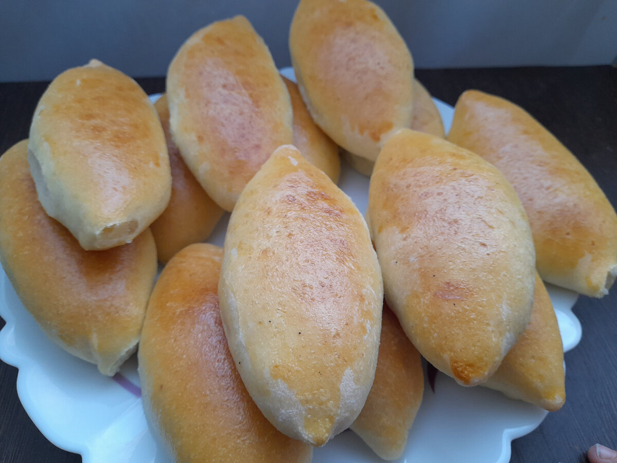 Рецепт Опара: Дрожжи 2гр(1ст л) или сухих 7гр(1,5ч.л) Сахар 2ч.л Мука 6ст.л Тёплое молоко 300мл(1,5ст-200гр) Тесто для пирожков: Мука 310гр( может уйти меньше, зависит от манки),(2стакана) Манная крупа 100гр(0,5ст) Соль 1ч.л Сливочное масло 30гр (2ст.л) Растительное масло 2ст.л Начинка: Зелёный лук 200гр Сливочное масло 40гр(2ст.л с горкой) Варёное яйцо 8-10шт Соль, перец молотый по вкусу Укроп 3 веточки Для смазывания Яичный желток Молоко 1ч.л Готовим опару Мука, сахар, дрожжи перемешиваем и добавляем тёплое молоко убираем в сторону на 15мин. Подготовим начинку, она может быть любой. Варёные яйца нарезаем мелко. На сковороде растапливаем масло и к нему добавляем зелёный лук и выключаем плиту, перемешиваем лук с маслом не жарим. Смешиваем лук с яйцами добавляем мелко нарезанный укроп для аромата перчим солим. Готовим смесь муки, мука 310гр к ней добавляем соль, манку. Опара подошла к ней добавляем порциями смесь муки с манкой, когда тесто будет густым к нему добавляем растопленное