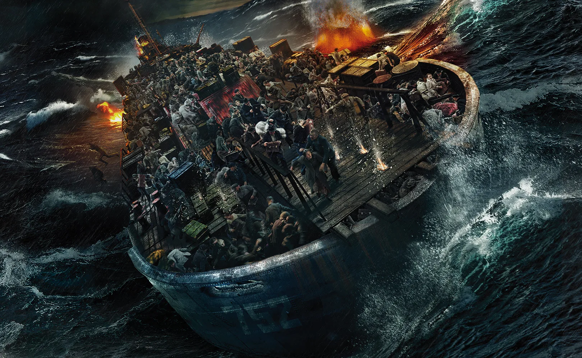Тех людей что вывели на палубе, запирают в маленьком кубрике на палубе, другие люди большая часть остается в трюме. Нас переносят в наше время, постаревшая Роза говорит что Джек был настоящий герой и продолжает рассказывать. Обратно прилетает разозлённый немец и начинает во всю обстреливать палубу, взрывы пальба, крики, люди прыгают за борт, по немцу уже никто не стреляет ни с буксира ни с баржи. И тут к барже подплывает катер, на котором находятся раненые с Невского пятачка вместе со старшиной.