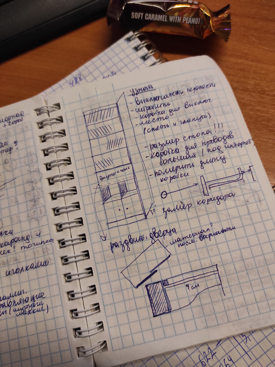 Это обычная история о книжном шкафе. О создании книжного шкафа. С помощью двух рук и шуруповерта. Очень классного книжного шкафа. Шкафа, которым я горжусь! Итак, история создания поэтапно. Этап первый. Дизайн-макет и расчет деталей. 1. Рисуем картинку в блокнотике ручкой. 2. Замеряем высоту и ширину будущего шкафа. 3. Рисуем чертеж в кореле с точными размерами в масштабе. 4. Рисуем объемный вариант. 5. Делаем раскладку деталей и распечатываем их. Этап второй. Закупка материала и распил. 6. Едем в строительный магазин и покупаем там ЛДСП-панели, кромочную ленту, евроболты, и заказываем распил панелей. В четырех дверцах просим сделать отверстия для петель. Также нам понадобится дверная фурнитура: ручки и петли. 7. Везем все это лего домой. Этап третий. Сборка. 8. Сортируем детали и подписываем панели стикерами. 9. С помощью утюга приклеиваем кромочную ленту по торцу каждой детали, которая будет видна. 10. Раскладываем детали шкафа на полу, кладем две вертикальные стены и подбираем нужны