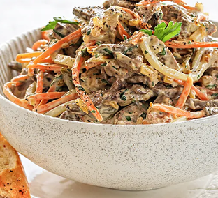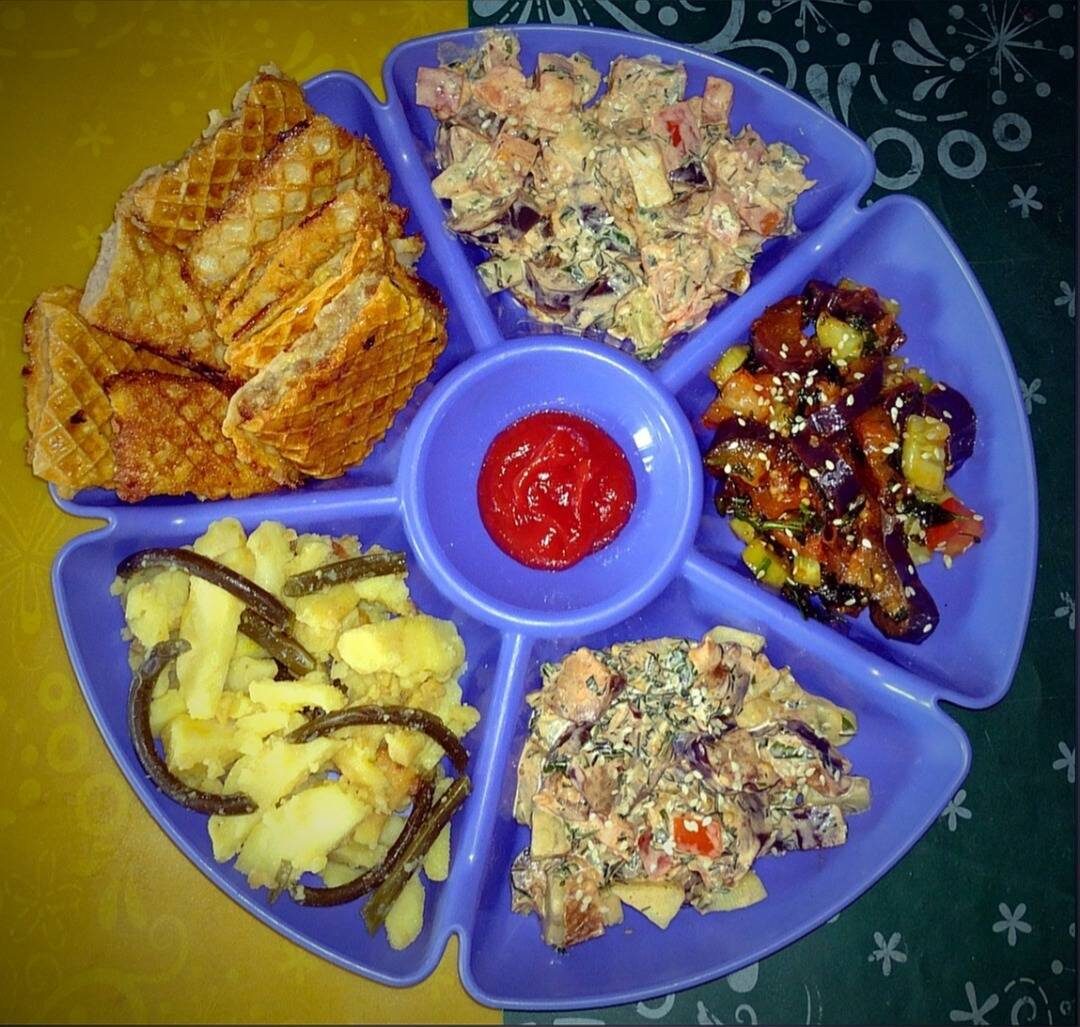 Больше всего понравилось с заправкой из сметаны. С растительным маслом жирно было, масла наверно много взяла. А в майонез чеснока переложила, не рассчитала и получилось остро и мало посолила. Но вот сметана дала свой привкус, который мне понравился.