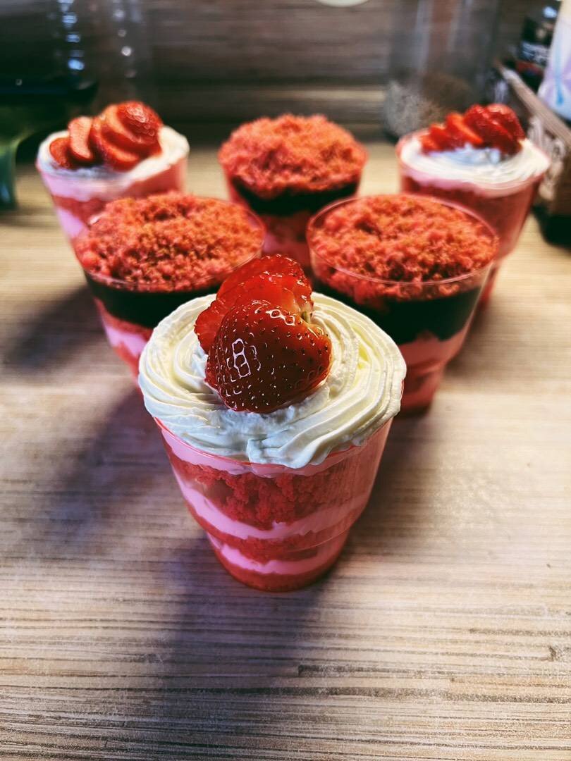 Ингредиенты: Бисквит, яйца, сахар, мука, молоко, Кремчиз, творожный сыр, сливки 33% ледяные, сахарная пудра, Начинка, Клубника, Банан, Шоколад Способ приготовления: Для бисквита: белки отделить от желтков. К белкам добавить щепотку соли и взбивать, постепенно повышая скорость и всыпая сахар, до пышной белой массы. Влить к взбитой смеси желтки и аккуратно перемешать лопаткой до однородности. К смеси постепенно всыпать муку и перемешивать, избегая комочков. Добавить молоко и снова все смешать. Вылить в форму, диаметром 18см, застелив дно пергаментом или фольгой. Выпекать 35-40 минут при 170 градусах. После выпечки оставить бисквит в духовке на 30 минут. Для кремчиза: ледяные сливки взбить, постепенно всыпая сахарную пудру, до крепких пиков. Затем добавить туда холодный творожный сыр и вмешать его на низких оборотах миксера. Остывший бисквит измельчить к крошку. Удобно делать это в блендере. Фрукты нарезать кубиком. Собирать трайфл слоями, как удобно. У меня: крошка, крем, фрукты и т.д…