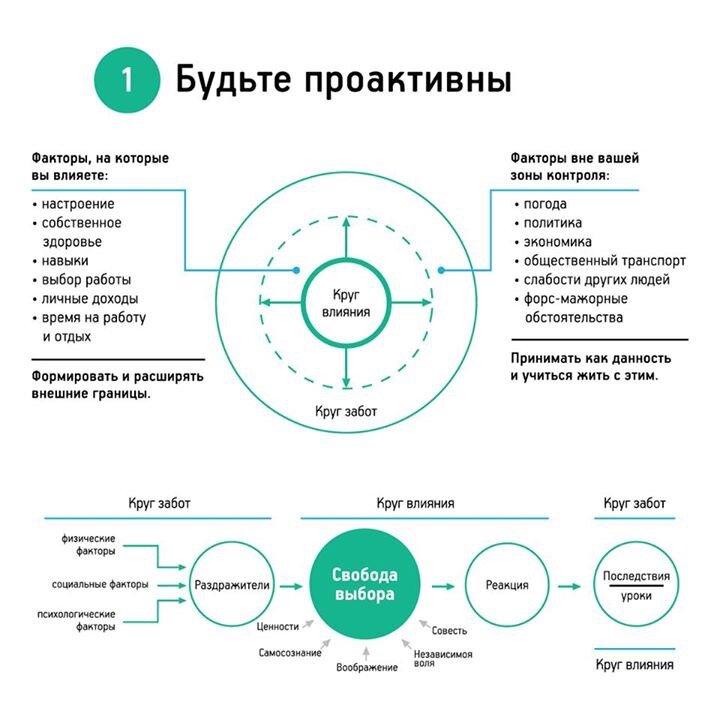 По мнению Кови, если вы проактивны вы можете сами выбирать как реагировать на те или иные события в жизни и раздражители. Быть проактивным по Кови это: