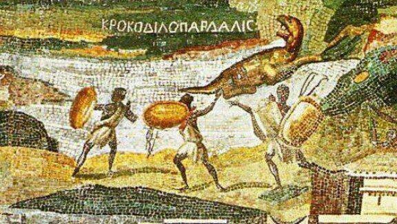 Мозаика из древнеримского города Палестрина. 100 год до н.э. Изображен узнаваемый динозавр (похож на игуанодона). Надпись с легкостью читается на русском языке «крокодилопардалик». Пардусом или пардаликом в Древней Руси называли леопарда. Два доказательства в одном: соседство "вымерших" рептилий с человеком и русская письменность до кирилицы.