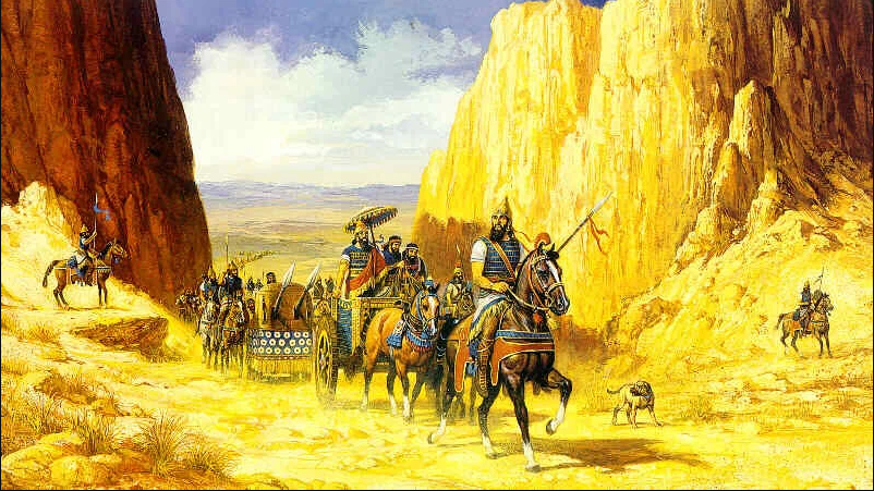 845 г. до н.э. Ближний Восток К 14-й году правления царя Ассирии Шульману-ашареда в Сирии произошло что-то такое, что заставило царя Ассирии собирать для похода многочисленную армию. 120000 воинов вел с собой Шульману-ашаред в этот поход. Момент для выступления в этот поход был выбран крайне удачно. Правители Арама (столица – город Дамаск) и Израиля (столица – город Шамерон) вновь силой оружия выясняли отношения. Бар-Хадад (библ.: Бен-Хадад) из Арама (вступил на трон до 856 г. до н.э.; убит в 845 гг. до н.э.), собрав отряды 12 царств Сирии и Палестины* и 19 городов Финикии, выступил походом на город Шамерон (библ.: Самария), столицу Израиля. За его стенами укрылся Ехорам (библ.: Иорам), сын Ахава, правитель Израиля (правил в 852-845 гг. до н.э.). Положение израильтян было отчаянным, когда в лагерь союзников пришла весть, что армия царя Ассирии переправляется через реку Евфрат. Известие застало союзников врасплох. Чтобы спасти свои владения от погрома, Бар-Хадад (библ.: Бен-Хадад) снял