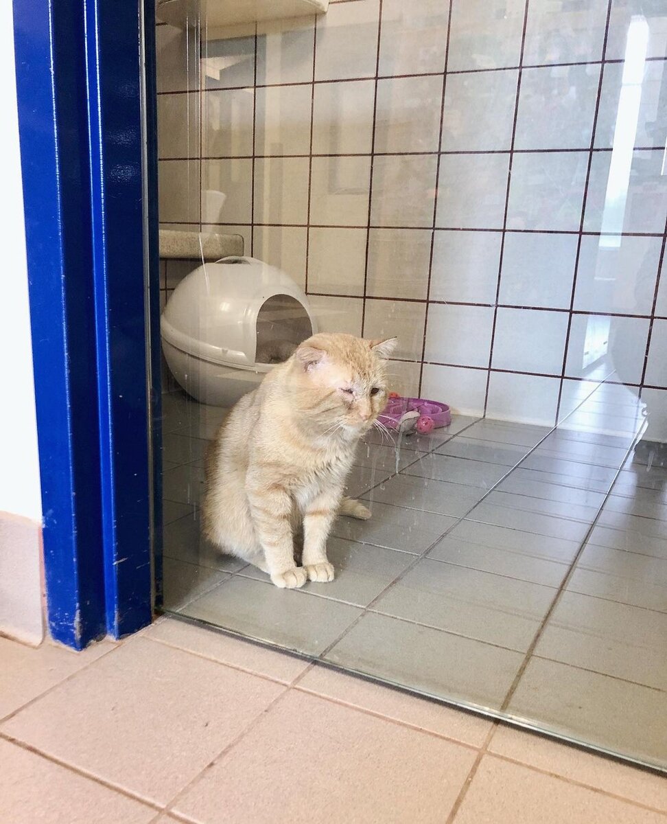 Осенью 2019 года в один из Миннесотских приютов для домашних животных (США) попал 6-летний бездомный кот. Он долгое время провел на улице и у него были серьезные проблемы со здоровьем: шрамы, травма глаза, сколы зубов, иммунодефицит и инфекционные заболевания. Из-за висячих ушек и прищуренных глаз его окрестили "самым грустным котом". Как отмечали в приюте: котик хоть и был немного замкнутым, но проявлял дружелюбность. Но несмотря на это, по причине своего внешнего вида не мог найти семью, которая была бы готова о нем позаботиться. Однако, спустя небольшое время жительница Миннесоты по имени Сандра на страничке приюта в интернете увидела сообщение о грустном котике и решила навестить его. На тот момент Сандра не собиралась заводить домашних животных, тем более это было запрещено, согласно её договору аренды. В свое первое посещение она увидела, что кот нуждается в постоянной помощи и уходе. В дальнейшем она опубликовала пост: "Первый визит. В жизни он выглядит еще печальнее, чем на