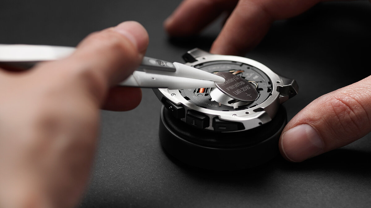 Элемент питания в кварцевых моделях находится внутри корпуса. Открыто крышку можно своими силами, но сначала отметим 3 разновидности ее соединения с корпусом: Поздравляем, крышка открыта! Вытаскивайте батарейку. Если вы позаботились о покупке новой заранее, останется только вставить ее на место старой и так же бережно закрыть крышку корпуса. Совет для всех, кто новым элементом питания не обзавёлся заблаговременно: сфоткайте старую батарейку, чтобы попросить в магазине такую же. Если такой нет, смотрим по таблице соответствия, чтобы выбрать подходящую альтернативу. Так как мы все делаем сами, здорово было бы позаботиться о внутренностях часов: резиновой грушей продуваем пыль около разъёма для батарейки. Перед помещением нового элемента питания обращаем внимание на полярность, чтобы не перепутать верх и низ батарейки (мы же хотим, чтобы часы заходили!). Возвращаем прокладку на место предварительно смазав ее силиконовой смазкой. Останется последний важный этап: закрыть крышку обратно. Дей