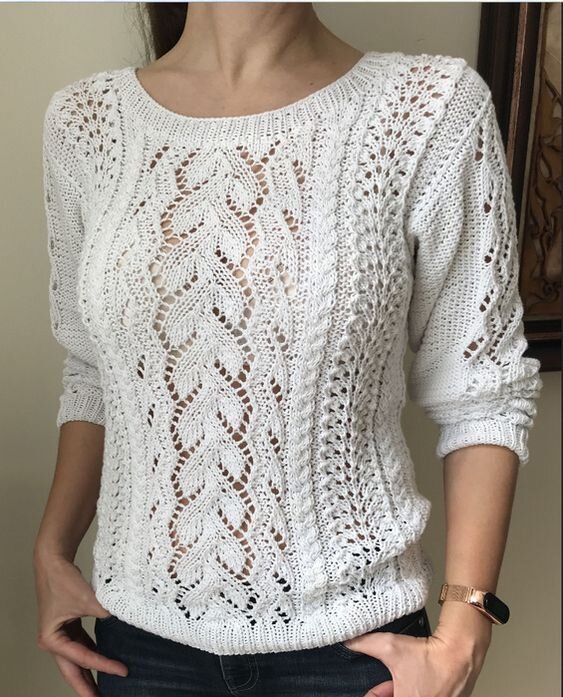 Самые красивые узоры для лета - легкие ажурные. А сочетание нескольких узоров - всегда создает превосходную и неповторимую модель. Например, такую. Следующая кофточка. Из мягкой пушистой пряжи согреет в ненастный день, пока снова не выглянет ласковое теплое солнышко. Еще один вариант. С короткими рукавами и вертикальной полоской ажура. А теперь в темном цвете. Красивый вариант пуловера-накидки на вечернее платье. Узор - медвежьи лапки. Еще одна хлопковая кофточка с крупным ромбовидным узором. Белый цвет замечательно смотрится на загорелой коже. Еще одна модель из толстой пряжи с хлопком. Градиент хорошо смотрится не только в теплых кардиганах, но и в легких летних кофточках. Модель с сочетанием нескольких видов ажурных узоров. Джемпер с использованием вставок из ажура. И последняя модель со сложным флористическим ажуром. Над таким узором придется потрудиться, но оно того стоит. Ровных вам петелек и красивых работ! Благодарю за просмотр! Ставьте 👍👍👍, если понравилась статья! Подпис