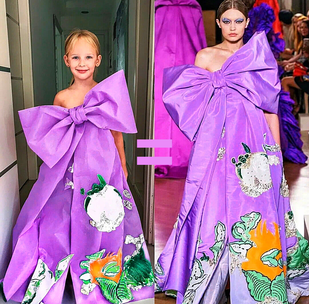 Я уже рассказывала об Алии Чаглар - маме Стефани, которая, когда дочери было 3 года, начала экспериментировать с фотографией и придумывать малышке наряды из цветов и продуктов. Сегодня я снова расскажу об этой семье, потому что их творчество вышло на новый уровень, и это заслуживает особенного внимания! А вы смотрите и наслаждайтесь! 1. Итак, вдоволь нафотографировав Стефани в платьях из бананов, зелени, тыквы, брокколи и цветов, маме пришла в голову новая идея: а почему бы не попробовать повторить наряды знаменитостей? 2. Для своей дочери не жалко ни времени, ни сил, ни креатива! 3. Мама начала копировать нашумевшие образы звёзд и примерять их на свою маленькую красотку. 4. Как говорит Алия, для создания какого бы то ни было наряда у нее уходит не больше 15-30 минут. 5. Завидная скорость, не правда ли? В чем же секрет? 6. А никакого секрета нет, ведь все гениальное - просто! 7. Алия использует для нарядов все те же сподручные материалы: мешки для мусора, занавески