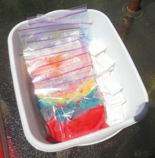 Часть 2. Тут. Сегодня займёмся очень ярким, красочным и немного взрывным экспериментом. Мне он очень напоминает запуск новогодних фейерверков. Собирайте компанию друзей и за дело! ПАКЕТЫ-БОМБОЧКИ Для изготовления бомбочек вам понадобятся: Смешайте крахмал с уксусом и красками и заполни этой смесью пакеты на треть. Сделай пакеты разноцветными и тогда получится настоящий фейерверк красок! Чайную ложку соды заверните в салфетку, а затем кладите в пакет и плотно закрывайте его. Затем хорошенько потрясите пакет, кладите его на землю и бегите! Через некоторое время пакет взорвётся, а на асфальте останутся красивые цветные разводы. Можно подложить под пакеты лист ватмана, и после забрать произведение искусства домой! Сода и уксус известная "взрывная" смесь. Уверена, что у вас всё получится. Продолжение ждите в следующих статьях.