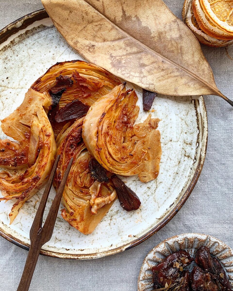 Капуста один из лучших овощей для холодного периода. Содержит мощнейшие антираковые, противовоспалительные и антибактериальные соединения. Запечённая в тандеме со специями капуста отлично согреет и подарит ощущение домашнего уюта, а чечевичный соус дополнит блюдо, сделав его полноценным ужином. Многие её игнорируют, сталкиваясь с тем что поздняя более жёсткая. Сегодня мы решим с вами эту проблему, ведь «ГЛАВНАЯ ПО ОВОЩАМ» точно знает как её приготовить вкусно. ПАРУ ПРАВИЛ ЗАПЕКАНИЯ ДЛЯ ПОЗДНЕЙ КАПУСТЫ: 1. НАРЕЗАЕМ НА БОЛЕЕ ТОНКИЕ СЛАЙСЫ. Это ускорит процесс и степень пропекания. Самый удобный способ такой нарезки - разрезать не большой кочан капусты наполовину через сердцевину и каждую половинку точно так же через сердцевину на тонкие дольки. 2. ТОМИМ В ОВОЩНОМ БУЛЬОНЕ. Заполните противень с капустой на 2-3 см ароматным овощным бульоном и поставьте на режим запекания на 35-40 мин. Большая часть бульона выпарится и сверху появится аппетитная золотистая корочка. Чтобы предотвратить под