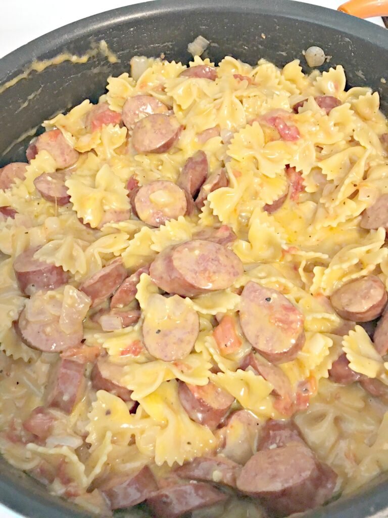 Очень лёгкий, но в тоже время вкусный рецепт "бантиков" или "бабочек" (кто как называет эти макаронные изделия) с копчёной колбасой. Делается в одной кастрюле, так что мыть особо ничего не придётся. Не обязательно использовать именно "бантики". Можно взять "рожки" или "ракушки", любые короткие макароны. Но, с "бантиками" мне кажется всё смотрится гораздо красивей. Ингредиенты Рецепт На всё про всё, у вас уйдёт не более 30 минут, а блюдо получается очень вкусное и сытное! Приятного аппетита!