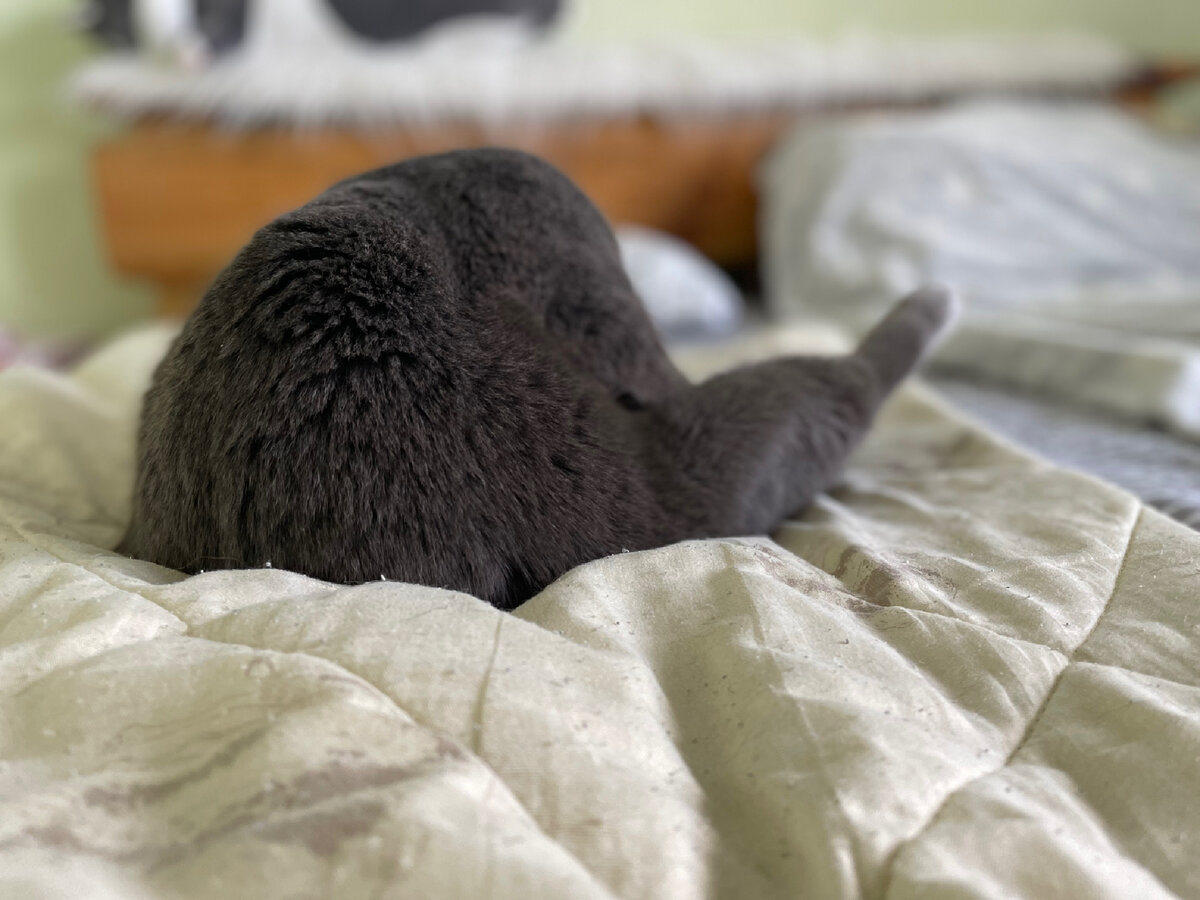 Живущего с кошкой человека напугать разными посторонними звуками, неожиданным перемещением предметов и тому подобной мистикой практически невозможно. Все и всегда обычно списывается на мурлыку. Правда домашний питомец все равно найдет повод удивить своего хозяина. С недавних пор одна наша кошка приобрела привычку забираться под одеяла, подушки, простыни, словом, начала проявлять большую любовь к постельному белью. Точнее любовь к нему у неё и так была, просто сейчас стала как-то активнее проявляться. В принципе меня это не сильно напрягало. Ну нравится периодически Няше сидеть под одеялом, что такого-то? Хорошо хоть не залезает в пододеяльник, - подумала я при очередной смене белья. Ну а так как кошки определенно умеют читать мысли, то и наш серый хвост решил изменить свою тактику взаимоотношений с постельным бельем. Как только я стала заправлять пододеяльник, кошка ловко проскочила внутрь и наотрез отказалась покидать его. Вытащить, вытряхнуть или ещё каким-то способом достать Ня
