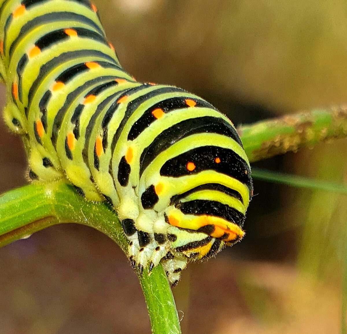 Махаон - самая большая и красивая бабочка. Гусеницы этой бабочки, не менее красивы. На второй стадии развития приобретают зелёный цвет, с поперечными чёрными полосками и оранжевыми пятнами. Размеры достаточно крупные. Питаются гусеницы растениями семейства зонтичных(кориандр, укроп, кинза, морковь, пастернак). Также гусеницы не откажутся и от культур произрастающих на огородах.