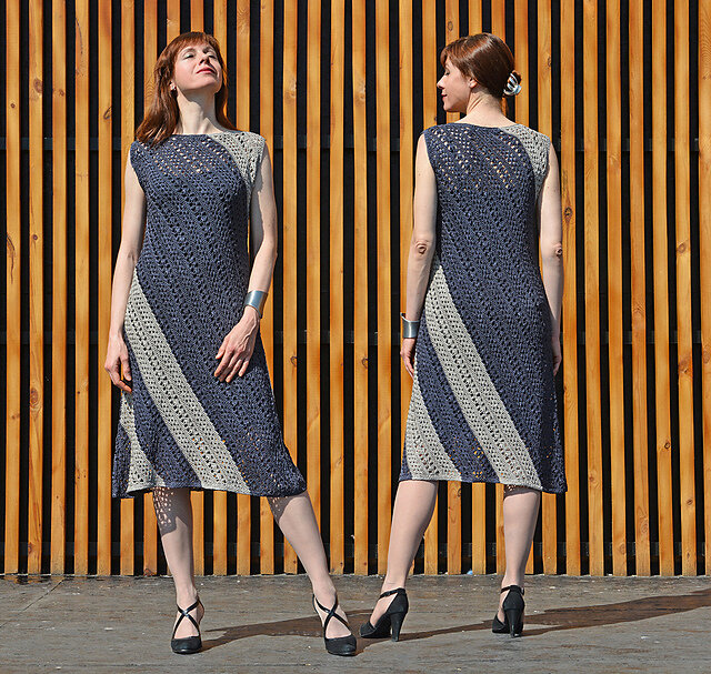 Как мне кажется, если поделить вязание на "летнее" и "зимнее", то зимним окажутся спицы, а летним - крючок. Само собой, наоборот не запрещено, но предпочтение очевидно. Поэтому я решила собрать небольшую коллекцию летних платьев крючком, а объединяющим их фактором стал визуальный рисунок спирали (или диагонали). Здесь я собрала платья с однонаправленной диагональю. А ведь она может быть и двунаправленной - шеврон. А каких эффектов в восприятии фигуры такой рисунок позволяет добиться - тема отдельного разговора.