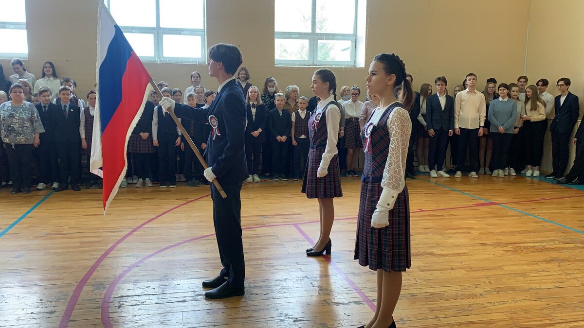 29 апреля 2022 года в 08.30 перед началом рабочего дня в спортивном зале лингвистической гимназии № 6, где выстроились все учащиеся 1-11 классов и педагоги, успешно прошла торжественная церемония выноса флага Российской Федерации и исполнение Государственного гимна России в знак нашего уважения к нашему Отечеству. Вот гордо вскинул два крыла Наш герб двуглавого орла! И звуки гимна величаво Плывут над вечною державой, Свободно реет в небе синем Трехцветный флаг моей России!