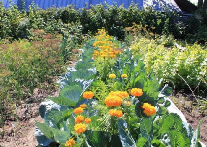 Бархатцы благотворно влияют на капустные грядки, да и многие другие овощные культуры.