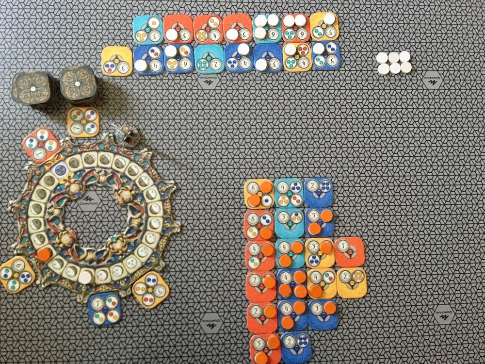 Потрясающий абстракт, потеснивший все остальные с пьедестала самого-самого лучшего. Эту игру я приобрела, скорее, вопреки, вычеркнув из плана желаний ещё на этапе первого обзора. Почему-то показалась мне игра слишком похожей на домино, процесс виделся скучным, затянутым.