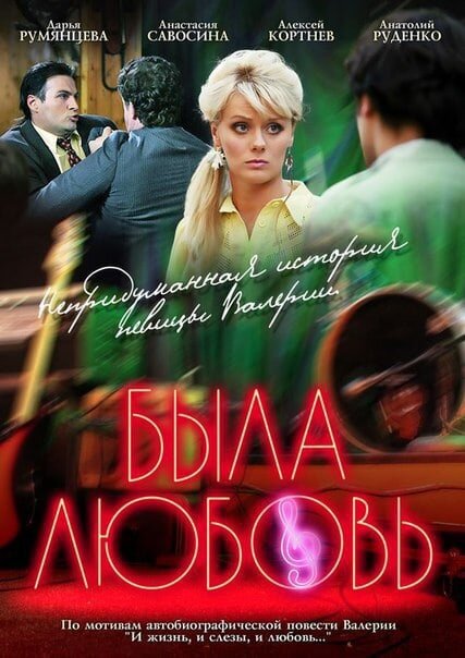 ИНФОРМАЦИЯ О ФИЛЬМЕ: Название :БЫЛА ЛЮБОВЬ (2010) Режиссер Николай Каптан Сценаристы Галина Сальгарелли, Елена Серова, Валерия Оператор Сергей Акопов Композиторы Виктор Дробыш, Валерия, Александр Разгулов Художник Сергей Воробьёв (VI) Продюсеры Наталия Будкина, Лилия Чекстер (иcп.), Светлана Трубникова (иcп.) Актеры Анастасия Савосина, Екатерина Вуличенко, Дарья Румянцева, Андрей Финягин, Александр Дьяченко, Алексей Кортнев, Марина Яковлева, Валерий Сторожик, Елена Дробышева, Константин Юшкевич, Сергей Мухин, Михаил Хмуров, Дмитрий Муляр, Тимофей Смирнов, Константин Юдаев, Эльмира Метревели, Андрей Андреев, Сергей Комаров (II), Анжелика Вольская, Сергей Астахов, Анатолий Руденко, Сергей Губанов, Роман Полянский, Евгений Самарин, Екатерина Крутикова, Дмитрий Богданов, Антон Сёмкин, Максим Заусалин, Данила Перов, Наталья Громушкина, Максим Пинскер, Яна Куц, Александра Живова, Кирилл Иванченко, Юрий Балицкий, Роман Ладнев, Константин Балакирев, Сергей Ефремов, Иван Соловьёв (III), Антон