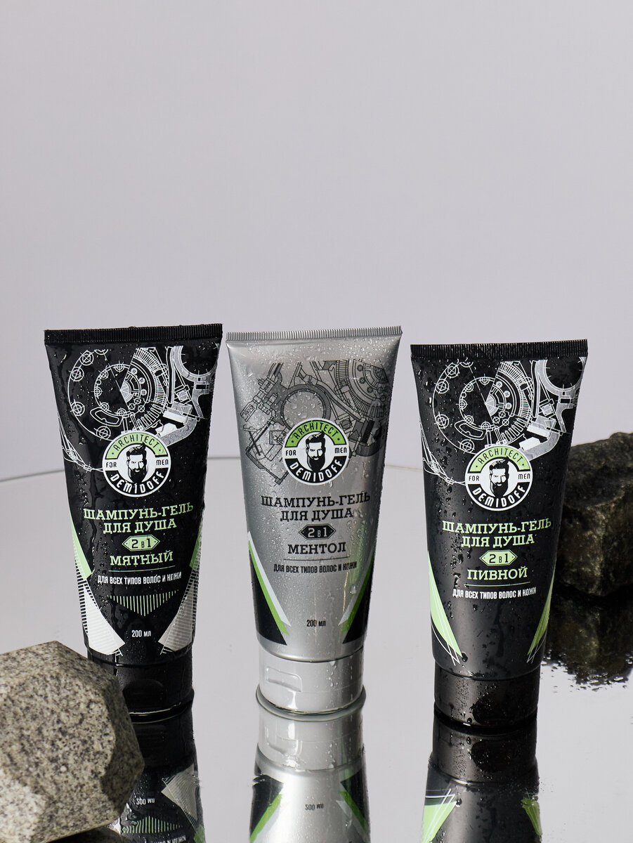 1. Шампунь-гель для душа 2 в 1 с экстрактом морских водорослей Знаете ли вы, что экстракт морских водорослей — один из самых древних ингредиентов, входящих в лечебные и косметические средства? Этот компонент отлично питает кожу и ускоряет процессы регенерации клеток. Кстати, водоросли отличаются высоким содержанием альгиновой кислоты, которая способствует выведению вредных веществ из организма. Шампунь Architect Demidoff, содержащий экстракт морских водорослей, улучшает кровообращение кожи головы, устраняет перхоть и борется с повышенной жирностью волос. Где купить: РИВ ГОШ 2. Шампунь-гель для душа 2 в 1 Мятный Если вы давно ищете средство с натуральным мятным ароматом, то шампунь-гель для душа Architect Demidoff — для вас! Средство имеет плотную гелевую текстуру, оставляет приятный холодок на коже и прекрасно бодрит по утрам! Где купить: РИВ ГОШ 3. Шампунь-гель для душа 2 в 1 Ментол Еще одно тонизирующее средство от Architect Demidoff — шампунь-гель для душа с экстрактом ментола. Ср