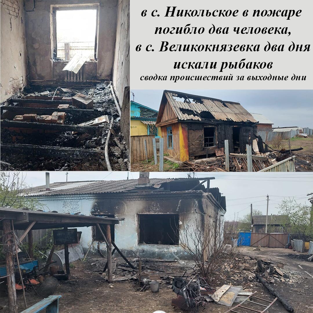 Пожар в жилом доме, пропавшие рыбаки и несколько десятков палов сухой травы зарегистрировали в Белогорском округе в майские праздничные выходные с 1 по 10 число. В ночь с 9 на 10 мая в двухквартирном жилом доме с. Никольское произошел пожар. Пожарные расчеты прибыли на место происшествия через три минуты после поступления сообщения. С огнем боролись два расчета г. Белогорск и один – с. Никольское. Задействовали восемь человек. Полностью справиться с возгоранием удалось спустя пять часов. В результате пожара погибло два человека - мужчины 76 и 60 лет. Еще один житель села 47 лет с ожогами доставлен в больницу. Квартира выгорела полностью на площади 84 квадрата. Предварительная причина пожара - аварийный режим работы холодильника. В с. Великокнязевка в минувшие праздничные дни искали рыбаков. 8 мая двое мужчин 41 года и 70 лет взяли резиновую лодку и спустились на воду Томи в окрестностях с. Светиловка. Вечером того же дня один позвонил жене и сообщил, что у них закончился бензин и они