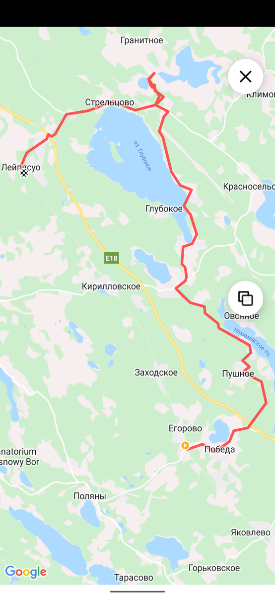 Субботний ПВД на 65 км ст.Каннельярви - ст.Лейпясуо А между ними вот такая красота. С Выборга на "Ласточке" добрались на ст.Каннельярви, тут начинается наш маршрут, на этот раз выехали вдвоем. Уже на велосипедах едем до поселка Победа, продолжаем ехать в сторону Церкви св.Петра и Павла (Церковь прихода Каннельярви) на улице Советская. Это одна из заброшенных Кирх Ленинградской области, год постройки 1934 по проекту Уве Ульберга. После едем в сторону поселков Пушное и Ганино. Добираемся до улицы Хвойная и выезжаем на грунты, которые выводят нас в п.Кирпичное. Из Кирпичного двигаясь по дороге 41К-092 уходим на п.Заводской, приезжаем его на сквозь и нас снова ждут грунты, ведущие в п.Староселье. Спускаемся к п.Нагорное и держим путь в п.Грибное вдоль побережья оз.Глубокое. На песчаном бергу озера делаем остановку, пьем чай с бутербродами и прекрасным видом на оз.Глубокое. Продолжаем двигаться вдоль побережья озера и выходим на дорогу 41К-181. Чуть более километра и мы у цели. Государ