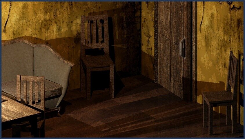 Очень интересный и необычный проект у Дмитрия Одинцова: комната Родиона Раскольникова из произведения «Преступление и наказание» в программе 3D-MAX.
