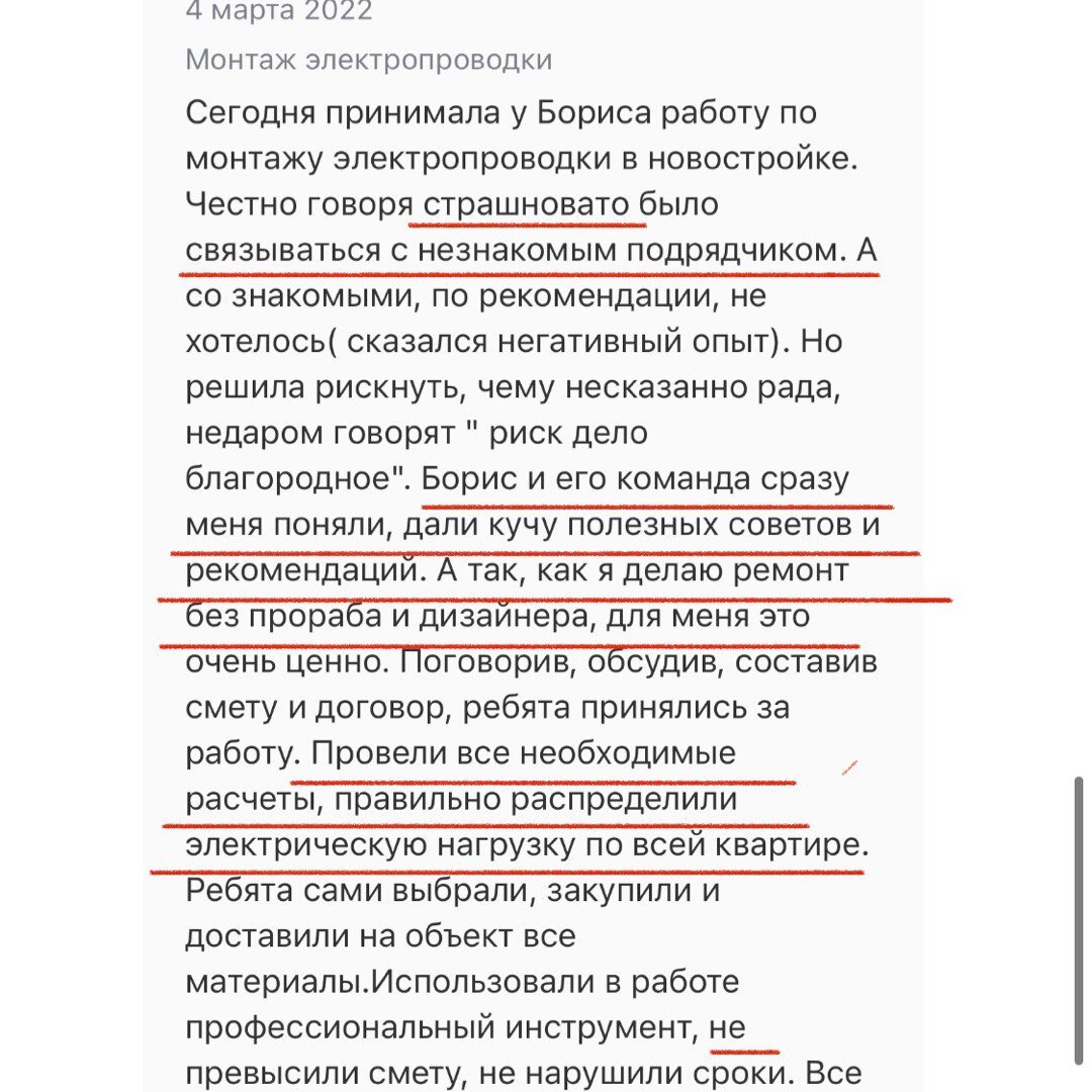 Отзыв от нашей заказчицы Ирины, подтверждает это. Для заказа качественного и безопасного электромонтажа под ключ, оставьте заявку на расчет стоимости, переходя по ссылке https://quiz.makelektro.ru/ или задайте вопросы по электрике, в наш мессенджер WhatsApp https://wa.clck.bar/79362553156 Работаем с загородными домами, квартирами, офисными и коммерческими помещениями по Москве и Московской области.