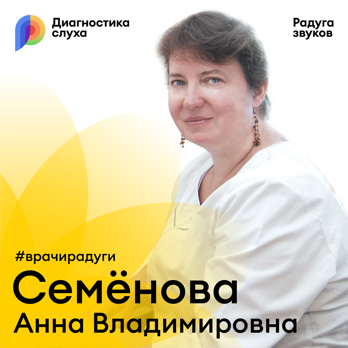 Продолжаем знакомить с нашими врачами — мастерами своего дела, которые регулярно проходят повышение квалификации и обучаются новым методам диагностики. Сегодня расскажем об Анне Владимировне Семёновой — враче-сурдологе, директоре московского центра хорошего слуха и одном из самых опытных специалистов «Радуги звуков». «До прихода в компанию я работала участковым врачом-терапевтом. Было очень страшно менять род деятельности, ведь для меня область слухопротезирования и сурдологии была абсолютно незнакома. Сейчас, спустя 20 лет, я понимаю, насколько моя работа важная и интересная. Она находится на стыке передовых технологий клинических исследований и ежедневной практики. С первого дня работы в «Радуге звуков» я возглавляю центр, который расположен в МОНИКИ им М.В. Владимирского. Здесь находится единственный для всего взрослого населения Подмосковья сурдологический центр. Все, кому рекомендованы слуховые аппараты, после посещения сурдолога могут оперативно прийти на приём к сурдоакустикам «